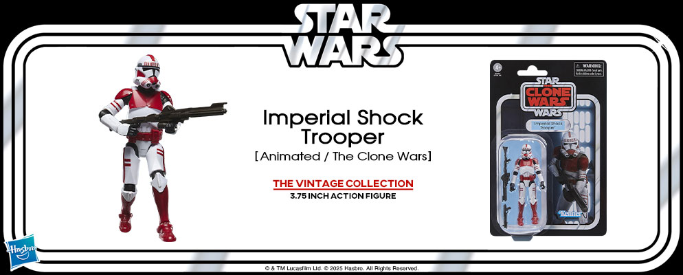 世界トップクラスの玩具メーカー、ハズブロより、SF映画の金字塔『スター・ウォーズ』の3.75インチ・アクションフィギュア「VINTAGEシリーズ」が登場!CGアニメ作品『スター・ウォーズ:クローン・ウォーズ』より、インペリアル・ショック・トルーパーがラインナップ!