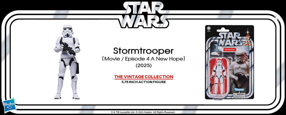 世界トップクラスの玩具メーカー、ハズブロより、SF映画の金字塔『スター・ウォーズ』の3.75インチ・アクションフィギュア「VINTAGEシリーズ」が登場!!映画『スター・ウォーズ エピソード4/新たなる希望』より、ストームトルーパーがラインナップ!