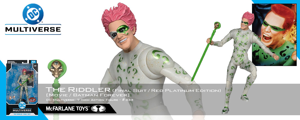 高い造形力とクオリティーに定評のあるマクファーレン・トイズがお贈りする、7インチ・アクションフィギュア「DCマルチバース」シリーズ。映画『バットマン フォーエヴァー』より、リドラー(ファイナルスーツ/レッド・プラチナム・エディション)がラインナップ!