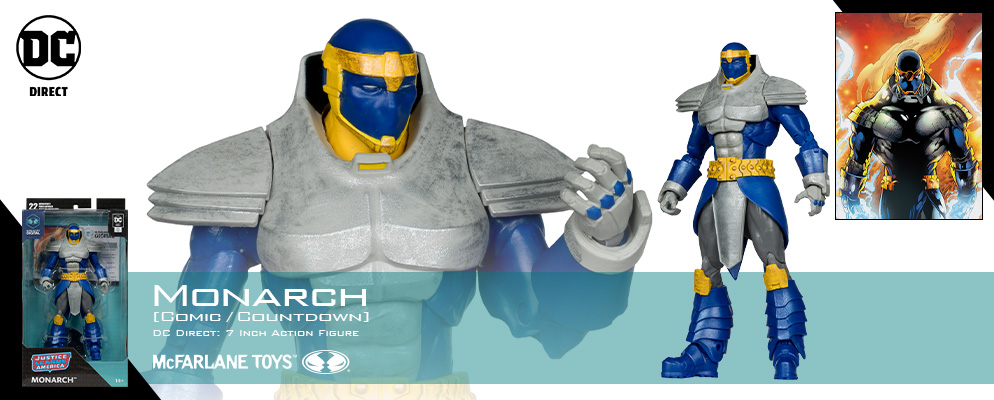 高い造形力とクオリティーに定評のあるマクファーレン・トイズがお贈りするブランド「DCダイレクト」より、7インチ・アクションフィギュアが登場!コミック『Countdown』より、モナークがラインナップ!