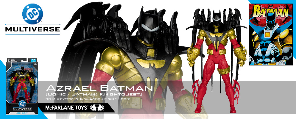 高い造形力とクオリティーに定評のあるマクファーレン・トイズがお贈りする、7インチ・アクションフィギュア「DCマルチバース」シリーズ。コミック『Batman: Knightquest』より、アズラエル/バットマンがラインナップ!