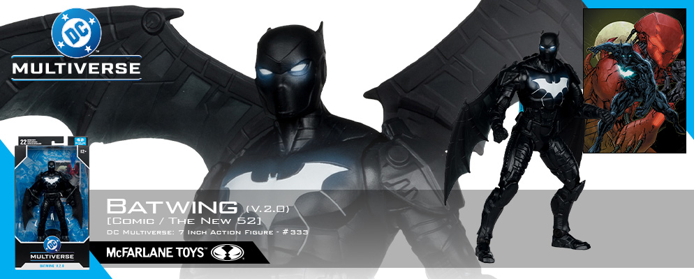 高い造形力とクオリティーに定評のあるマクファーレン・トイズがお贈りする、7インチ・アクションフィギュア「DCマルチバース」シリーズ。コミック『The New 52』より、バットウィング(V.2.0)がラインナップ!