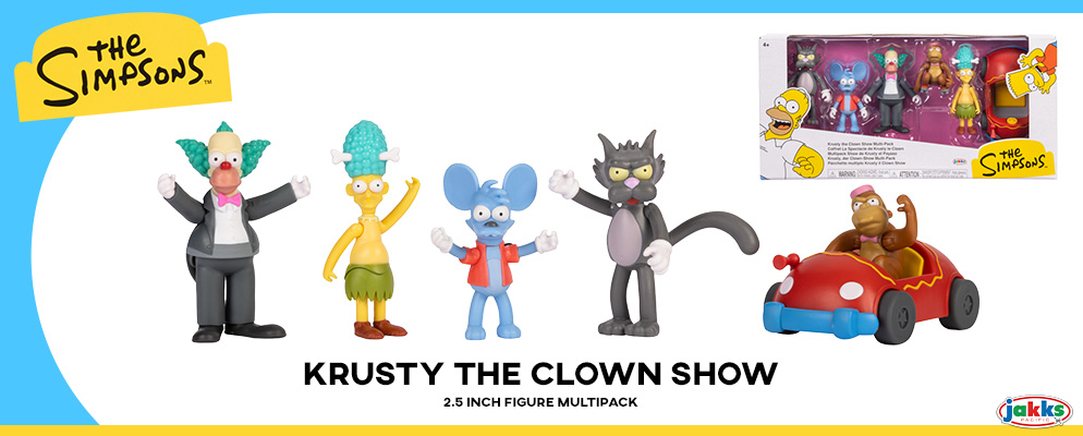 アメリカのメーカー、ジャックス・パシフィックがお贈りする、アメリカの大人気アニメ『ザ・シンプソンズ』の2.5インチ・フィギュアシリーズ。クラスティ・ザ・クラウン・ショーのマルチパックが登場だ!