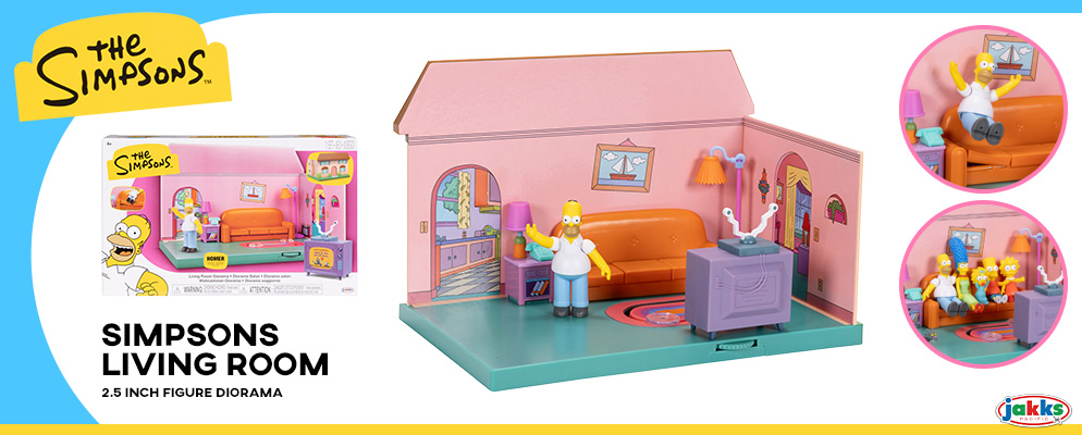 アメリカのメーカー、ジャックス・パシフィックがお贈りする、アメリカの大人気アニメ『ザ・シンプソンズ』の2.5インチ・フィギュアシリーズ。シンプソンズ・リビングルームのジオラマが登場だ!