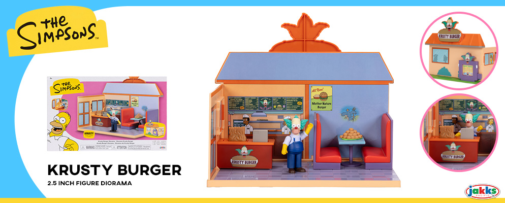 アメリカのメーカー、ジャックス・パシフィックがお贈りする、アメリカの大人気アニメ『ザ・シンプソンズ』の2.5インチ・フィギュアシリーズ。クラスティ・バーガーのジオラマが登場だ!