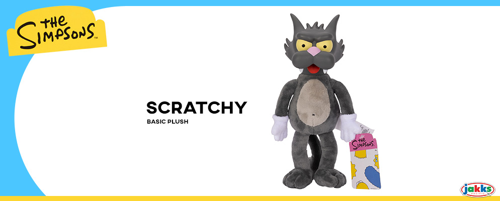 アメリカのメーカー、ジャックス・パシフィックがお贈りする、アメリカの大人気アニメ『ザ・シンプソンズ』のプラッシュシリーズ。スクラッチーが登場だ!