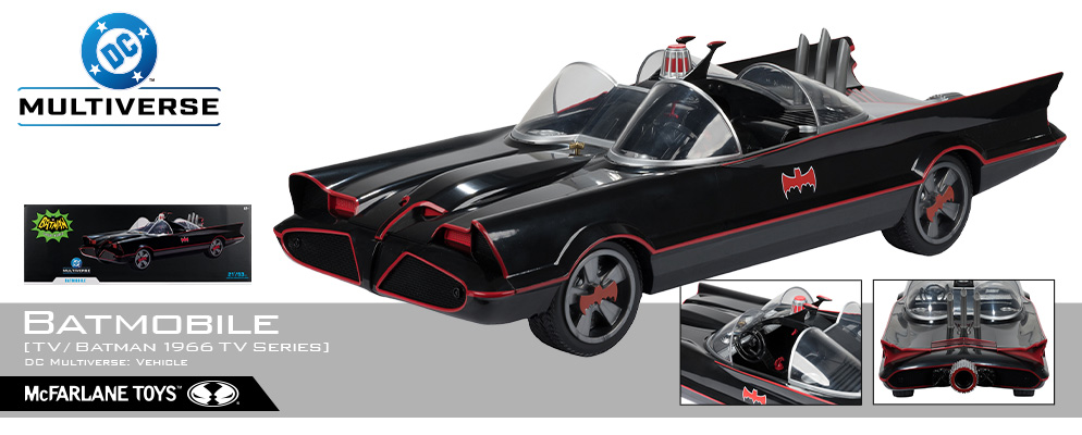 高い造形力とクオリティーに定評のあるマクファーレン・トイズがお贈りする、7インチ・アクションフィギュア「DCマルチバース」シリーズ。TVドラマ『バットマン 1966年TVシリーズ』より、バットモービルがラインナップ!