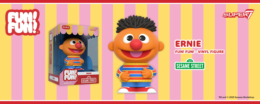デザイナーズトイを主力とするスーパー7がお贈りする、ビニール・フィギュアの「FUN! FUN!」シリーズが登場!『セサミストリート』より、アーニーが登場だ!