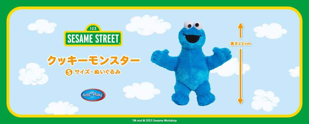 大手玩具メーカーのジャストプレイがお贈りする、『セサミストリート』のぬいぐるみシリーズ。Sサイズのクッキーモンスターがラインナップ!