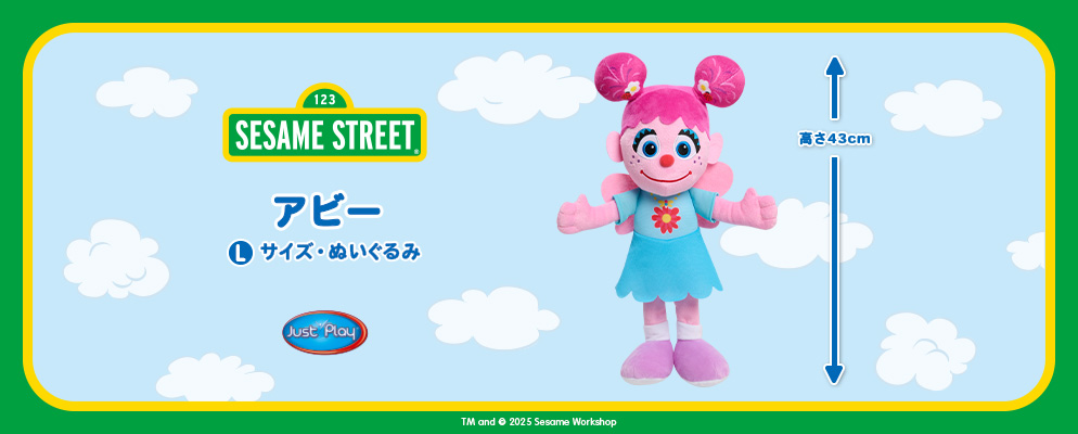 大手玩具メーカーのジャストプレイがお贈りする、『セサミストリート』のぬいぐるみシリーズ。Lサイズのアビーがラインナップ!