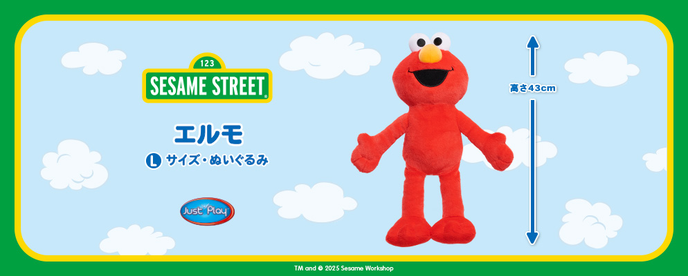 大手玩具メーカーのジャストプレイがお贈りする、『セサミストリート』のぬいぐるみシリーズ。Lサイズのエルモがラインナップ!