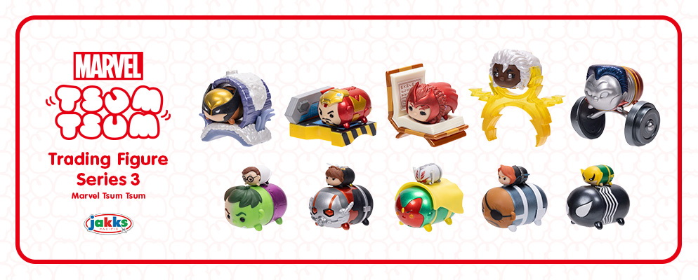 アメリカのメーカー、ジャックス・パシフィックがお贈りする、ぬいぐるみやモバイルゲームで人気の『ツムツム』を立体化したフィギュアシリーズ。 『マーベル ツムツム』より、「トレーディング・フィギュア」のシリーズ3が登場だ!