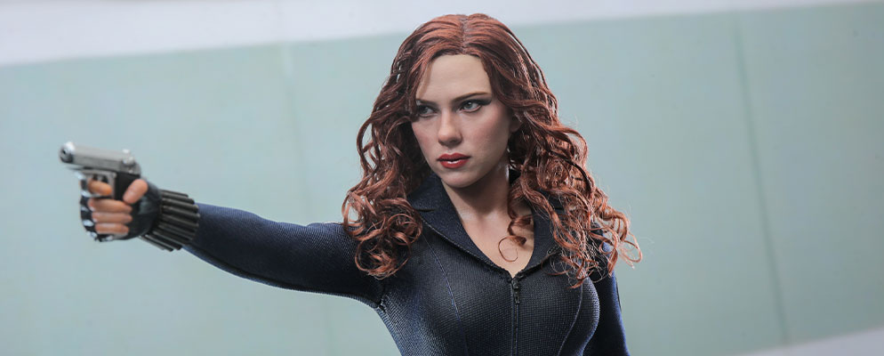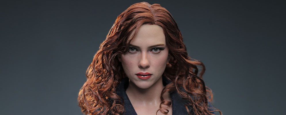 『アイアンマン2』に登場するブラック・ウィドウを、全高約28cm、28箇所以上が可動するハイエンドな1/6スケールのフィギュアとして立体化。新規開発となる、演じるスカーレット・ヨハンソンの肖像権をクリアしたヘッドは、眼球可動ギミックを搭載。自由な視線変更によって、まるで生きているかのような存在感を醸し出すことが可能だ。アイコニックな赤茶色のカーリーヘアは、ウール素材による植毛仕様でリアルに表現。皮膚の質感やメイクなどを再現すべく、一つひとつハンドペイントで塗装が施されている。抜群のプロポーションを表現したコスチュームは、「S.H.I.E.L.D.」のマークがあしらわれたブラックのボディスーツ、ブラック・ウィドウのマークがデザインされたベルトなど、ディテールや素材にこだわり抜き、細部に至るまで精巧な仕上がりだ。武器として、2丁のピストル、通常時と放電時のテイザー・ディスク、ロープが付属。アクセサリーとして、スプレー缶が付属する。豊富な差し替え用ハンドパーツを使用すれば、さまざまなシーンを再現可能だ。キャラクターのロゴがあしらわれた台座は、マグネット機能でフィギュアを固定できる特別仕様となっているぞ。