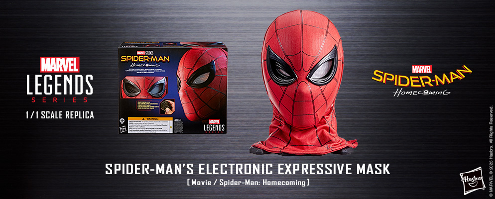 世界トップクラスの玩具メーカー、ハズブロがお贈りする「マーベル・レジェンド」シリーズ。キャラクターの武器や装備品を立体化するハイエンドラインに、映画『スパイダーマン:ホームカミング』がラインナップ。スパイダーマン エレクトロニック・マスクのマスクが登場だ!