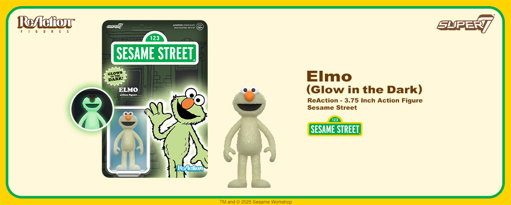 デザイナーズトイを主力とするスーパー7がお贈りする、3.75インチ・アクションフィギュア「リ・アクション」シリーズに、『セサミストリート』より、エルモ(蓄光)がラインナップ!日本限定となる、ブリスターパックで登場だ!