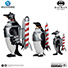 バットマンは、グラップネル・ガン、バットラング、差し替え用ハンドパーツが付属。キャットウーマンは、鞭、テーザーガンが付属。マックス・シュレックは、焼け焦げた顔の差し替え用ヘッドが付属。ペンギンは、着脱できるコートと帽子、傘が付属。ペンギン軍団は、武装した大きさの異なるペンギンが3体セットとなっており、別パッケージのペンギンが使用できるジャケットが付いてくる。また、ピースメイカーは、素顔の差し替え用ヘッド、2種類の差し替え用ヘルメット、ピストル、ワッシーが付属する。