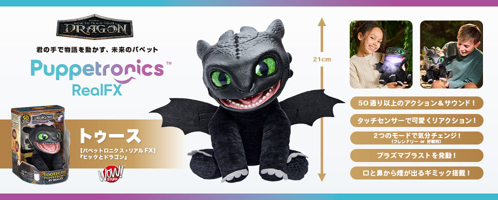 ワオ・スタッフが開発した、アニマトロニクスとパペットを組み合わせた「パペットロニクス」が日本上陸!「パペットロニクス・リアルFX」シリーズに、実写映画『ヒックとドラゴン』より、トゥースがラインナップ!