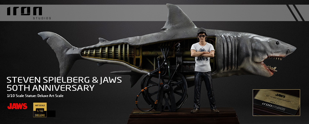 高い造形技術とユニークなコンセプトで注目を集める、ブラジルのアイアン・スタジオが贈る1/10スケールのスタチューシリーズ「デラックス・アートスケール」。映画『ジョーズ』のスティーブン・スピルバーグ&ジョーズ50周年が登場だ!