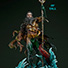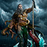 サイドショウがオリジナルでデザインしたアクアマンを、高さ約74cm×幅約41cm×奥行き約39cmのスタチューとして立体化!傷跡のある老齢のヘッド、海の生物と融合した半身、フジツボが寄生したアーマーやトライデントなど、細部に至るまで精巧に造りこまれている。台座は、赤いイカの触手が伸び、荒れ狂う波が渦巻くジオラマ仕様となっている。