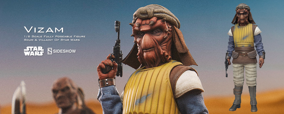 「キング・オブ・ハイエンド」の老舗メーカー、サイドショウがお贈りする、『スター・ウォーズ』1/6スケールフィギュアシリーズ。「スカム&ヴィラニー・オブ・スター・ウォーズ」カテゴリーから、ヴィザムが登場だ!