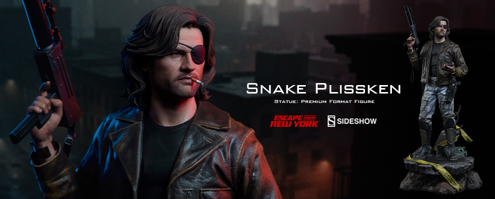 ジョン・カーペンター監督の映画『ニューヨーク1997』にて、カート・ラッセルが演じたスネーク・プリスキンを、大迫力の高さ約57cm × 幅約27cm × 奥行き約29cmのスタチューとして立体化。眼帯を装着したヘッド、ジャケットや迷彩柄のパンツ、スパイクのついたブーツ、右手に構えたスコープ付きサブマシンガン、左手首のタイマーなど、細部に至るまで精巧に造形されている。刑務所と化したマンハッタン島をイメージした台座は、マンホールの蓋や警告テープを造形したジオラマ仕様だ。
