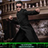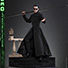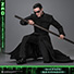 『マトリックス リローデッド』に登場するネオを、全高約31cm、30箇所以上が可動するハイエンドな1/6スケールのフィギュアとして立体化。演じるキアヌ・リーブスの肖像権をクリアしたヘッドは、眼球可動ギミックを搭載し、自由な視線変更によって、まるで生きているかのような存在感を醸し出すことが可能。皮膚の質感や皺、髪型などを再現すべく、一つひとつハンドペイントによる塗装が施されている。トレードマークといえるサングラスは、着脱が可能だ。司祭を彷彿とさせるローブ風の黒いコスチュームは、質感やディテールにこだわり、細部に至るまで精巧な仕上がり。コートはワイヤーを内蔵しているので、動きをつけることができる。また、可動域の広いボディを採用しており、特徴的な武術の構えを忠実に再現することが可能だ。武器として、剣、スパイクメイス、スタッフ、2本の釵(さい)、折れた槍が付属。豊富な差し替え用ハンドパーツを使用すれば、さまざまな劇中のアクションシーンを楽しめる。台座は、印象深いメロビンジアンの城での戦闘をテーマにしたジオラマ仕様。自由にフィギュアの保持位置を変更できるフレキシブル・ピラーを採用しているので、躍動感あるポーズを演出することができるぞ。併せてディスプレイできるバックボードが付いているのも嬉しいポイントだ!
