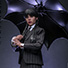 『ウェンズデー』に登場するウェンズデーを、全高約27cm、25箇所以上が可動するハイエンドな1/6スケールのフィギュアとして立体化。新規開発となる、演じるジェナ・オルテガの肖像権をクリアしたヘッドは、眼球可動ギミックを搭載。自由な視線変更によって、まるで生きているかのような存在感を醸し出すことが可能だ。皮膚の質感やメイクなどを再現すべく、一つひとつハンドペイントによる塗装が施されている。トレードマークの三つ編みおさげの黒髪は、精密な造形で表現。小柄なボディを表現するため、新規開発の素体を採用している。ウェンズデーが特注したモノトーンの制服は、ネヴァーモア学園の校章があしらわれたストライプ柄のブレザー、スカート、ニットベストやネクタイなど、質感やディテールにこだわり、細部に至るまで精巧な仕上がりだ。劇中を彩る豊富なアクセサリーとして、バックパック、傘、チェロと弓、椅子、追跡装置、ケース付きの水晶、秘密結社「ベラドンナ・クラブ」の預言書が付属。預言書には、ウェンズデーとジョセフ・クラックストーンの対決が描かれたページも再現されているぞ。さらに、ハンドのフィギュアが3つの異なるスタイルで付属!それぞれマグネットを内蔵し、ウェンズデーの肩に取り付けられるのも嬉しいポイント。多彩な差し替え用ハンドパーツを併せて使用すれば、さまざまな印象的シーンを演出可能だ。円形の台座は、ネヴァーモア学園をイメージした石面の床がデザインされた特別仕様となっている。