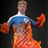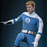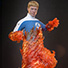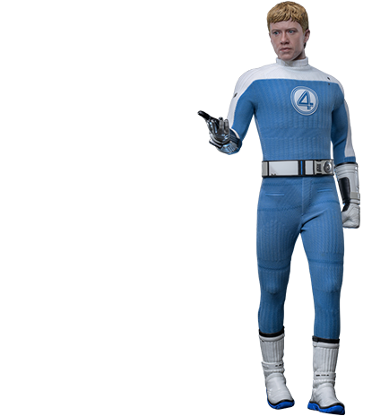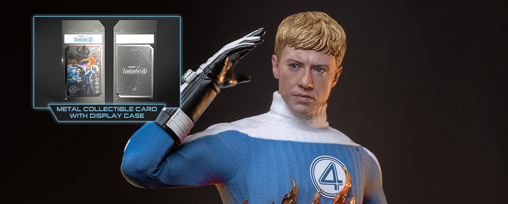 『ファンタスティック4:ファースト・ステップ』に登場するヒューマン・トーチ(ジョニー・ストーム)を、全高約30cm、30箇所以上が可動するハイエンドな1/6スケールのフィギュアとして立体化。新規開発となる、演じるジョセフ・クインの肖像権をクリアしたヘッドは、眼球可動ギミックを搭載。自由な視線変更によって、まるで生きているかのような存在感を醸し出すことが可能だ。皮膚の質感や皺などを再現すべく、一つひとつハンドペイントによる塗装が施されている。鮮やかなブルーとホワイトが印象的な「ファンタスティック4」のコスチュームは、伸縮性のあるリブ素材を使用し、細部に至るまで精巧な仕上がりだ。さらに、炎を操って飛行する能力を再現できる、高さ約32cmのエフェクトパーツが付属!下半身のボディと差し替えることで、2通りのディスプレイが可能だ。炎を操った状態を含む多彩な差し替え用ハンドパーツを使用すれば、さまざまなシチュエーションを演出できるぞ。台座は、作品のロゴなどがあしらわれた特別仕様となっている。